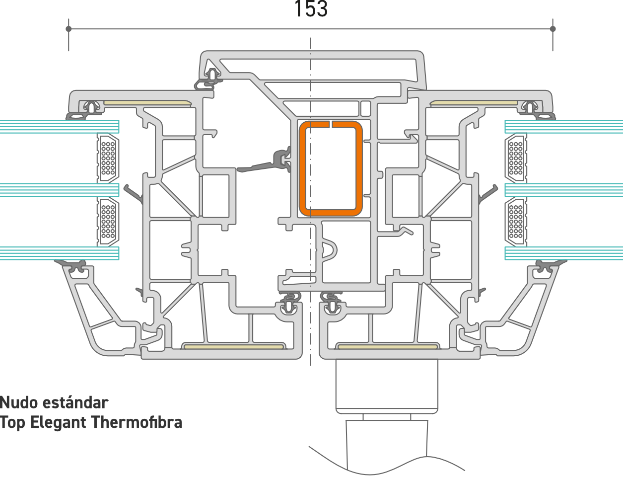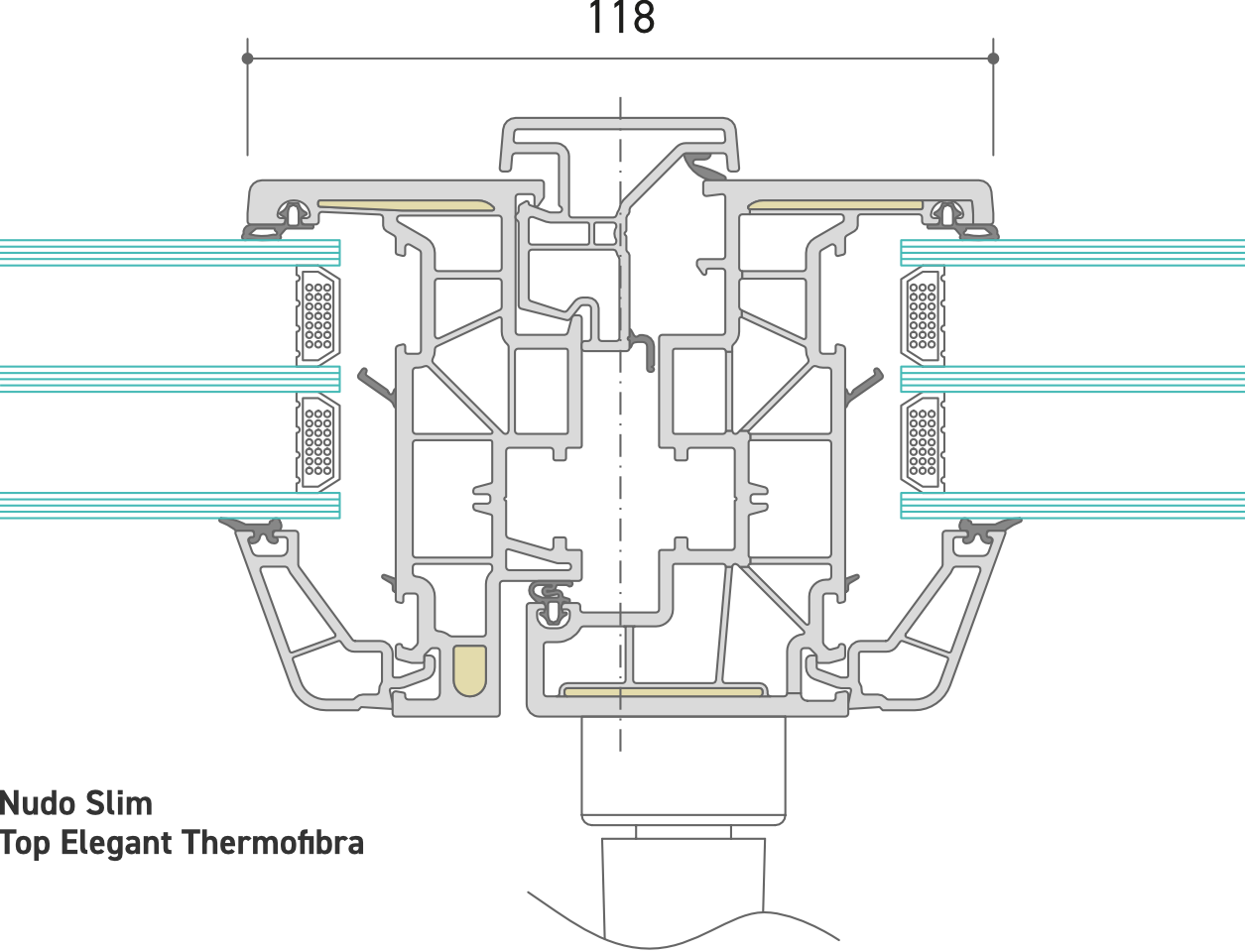 El NUDO SLIM destaca por su diseño refinado y moderno, ofreciendo la misma calidad y prestaciones que caracterizan a la serie Top 76 Elegant Thermofibra, pero con una estética más ligera y contemporánea.